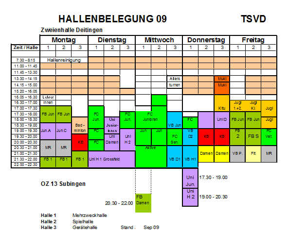 Hallenbelegungsplan Zweienhalle Deitingen